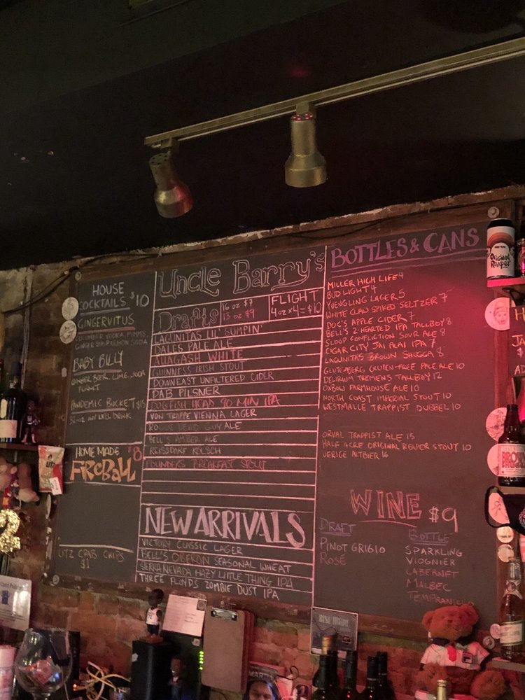 Uncle Barry's, located in Brooklyn, NY, is a casual dining spot perfect for groups. With outdoor seating and a full bar, it's a great place to relax and unwind. Their new arrivals include Bell's Best Brown Ale and Westbrook White Thai for beer lovers. The classic cocktails like Dark N' Stormy and Negroni are sure to please any cocktail enthusiast. But what sets Uncle Barry's apart are their unique house cocktails like the Gingervitus with cucumber vodka and the Smoke Break with mezcal. The diverse selection of drinks paired with the laid-back atmosphere make Uncle Barry's a must-visit for a fun night out with friends.